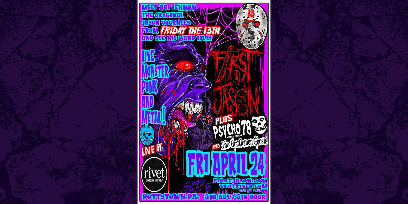 Join us on Friday, April 24th at Rivet for a terrifying evening, packed with musical horror of epic proportions, featuring First Jason with Ari Lehman, Psycho ’78 Misfits Tribute, and The Gentleman Ghosts!
