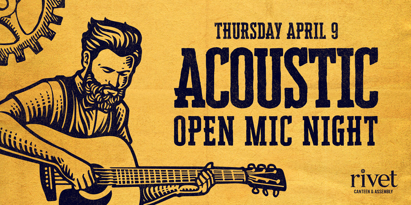 Join us for a FREE acoustic open mic night at Rivet on Thursday, April 9th! Whether you want to sit back and discover new local artists or hop on stage and play a song or two, everyone is welcome.