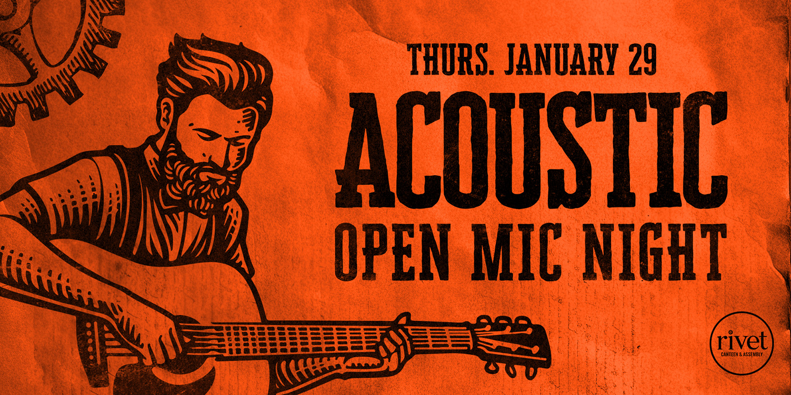 Join us for a FREE acoustic open mic night at Rivet on Thursday, January 29th. Come support local talent, find new artists to follow, and enjoy a night of live music!