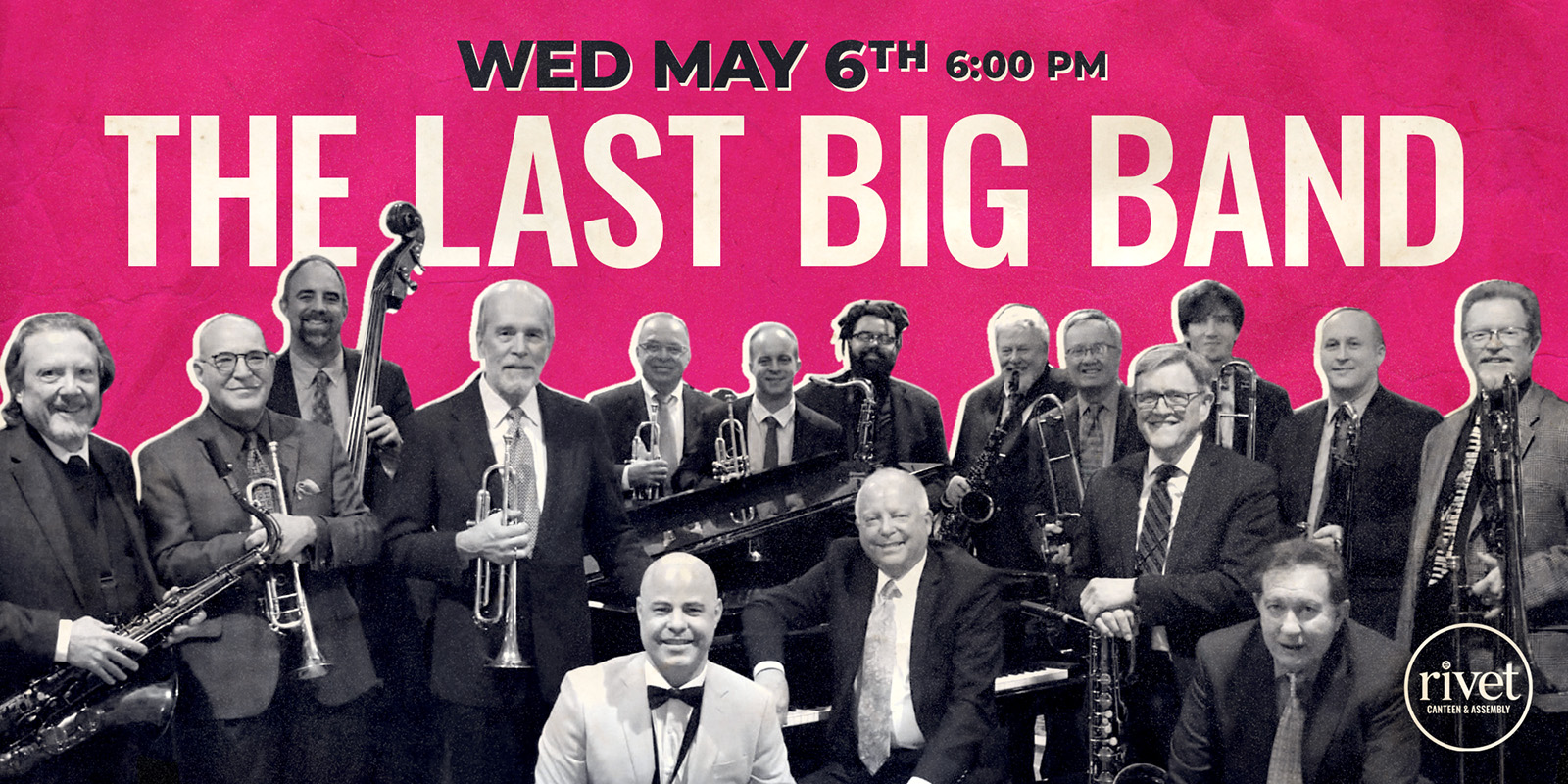 Acclaimed jazz orchestra The Last Big Band returns to Rivet on Wednesday, May 6th! Join us as we celebrate the Golden Era of jazz with an evening of danceable classics and timeless standards.